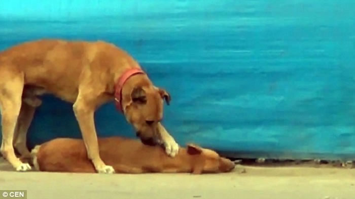 (神秘的地球uux.cn报道)秘鲁钦查省一对形影不离的狗狗,其中一只早前不幸遭路过汽车辗死,其同伴伴在身旁一小时不愿离去,期间对死去同伴的身躯不断又抓又推,似在希望能够唤醒它。有途人将这心酸的一幕拍下,引起网民热烈回响,有人对小狗的遭遇表示同情,亦有人批评拍片者宁在一旁拍摄,也不愿出手协助小狗。