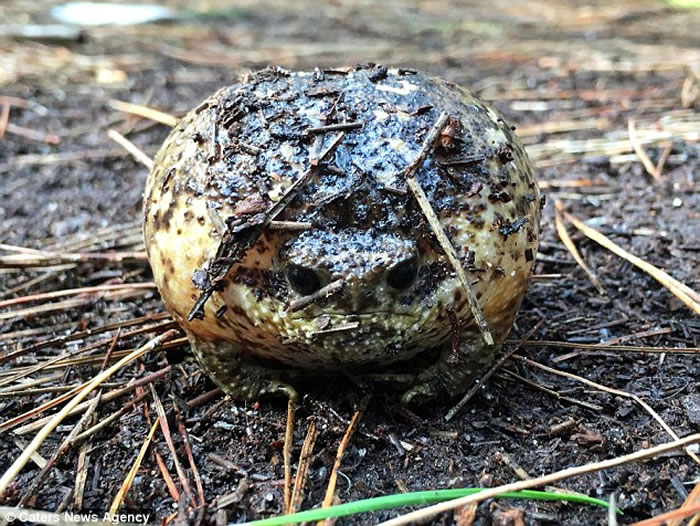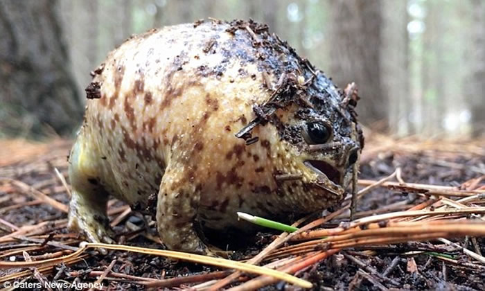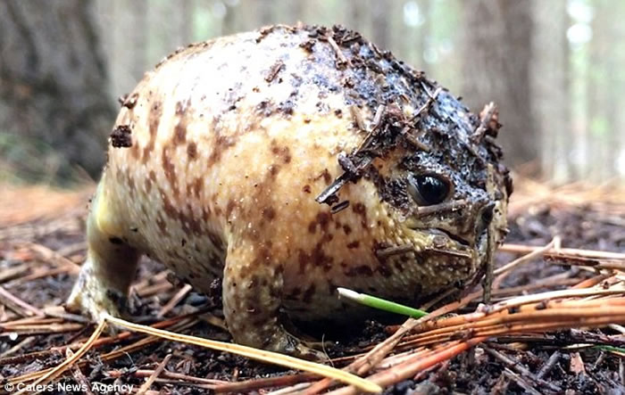 (神秘的地球uux.cn报道)南非开普敦业余摄影师范尼若普(Simon van Nierop)日前与家人带同2只爱犬,到当地的托凯森林(Tokai Forest)散步,期间他们听到响亮的尖叫声,循声音探索,发现原来是一只身体鼓胀的开普敦雨蛙,伏在地上一动不动。