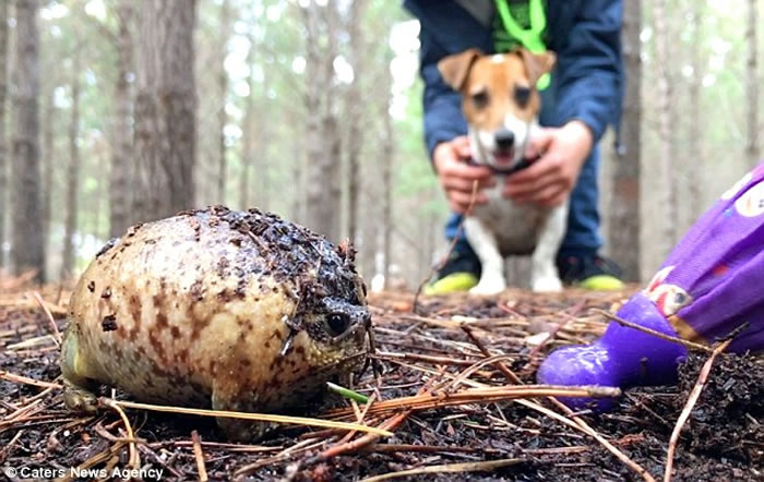 范尼若普的爱犬见状欲扑上前,雨蛙立即将身体鼓胀得更厉害,有如一个小球,并发出刺耳的尖叫声虚张声势,令他们一家当堂吓一跳,然后得啖笑。范尼若普表示,雨蛙明显是因为快将下雨,从地下的洞穴走出来。