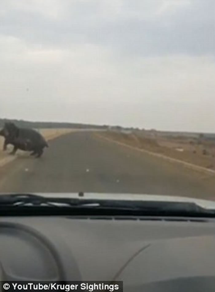 视频:南非克鲁格国家公园河马施铁头功撞凹汽车