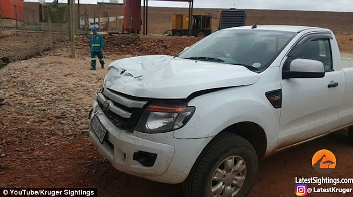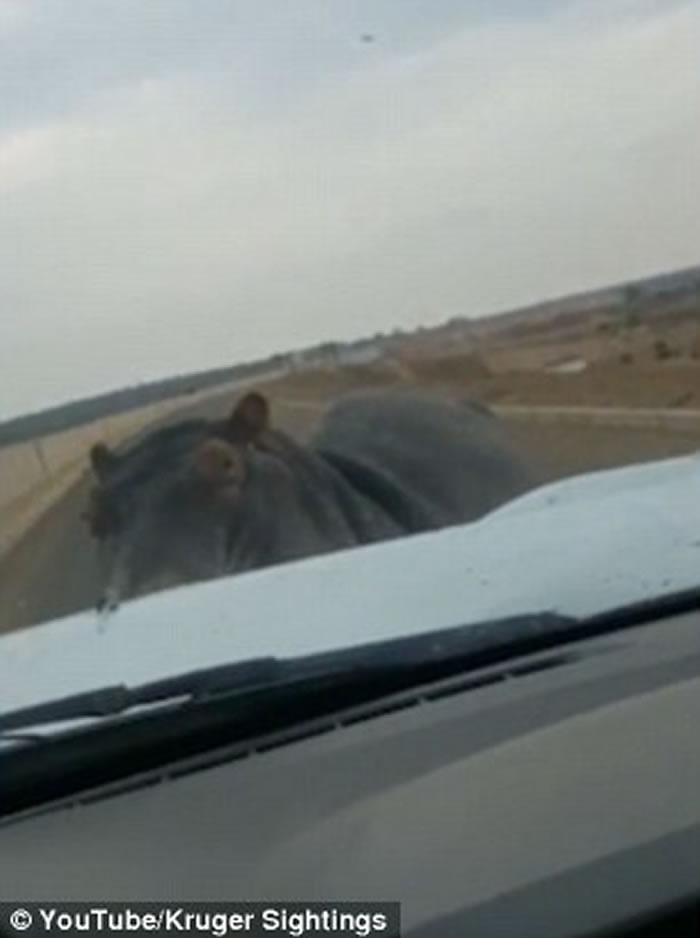 (神秘的地球uux.cn报道)南非一名男子日前驾车途径东部克鲁格国家公园时,遇上一名力大无穷的不速之客,一只河马突然用头撞向男子的车辆,导致车头盖严重凹陷。