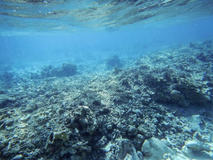 南海的渔夫们用船只的螺旋桨来打碎嵌有砗磲的珊瑚礁,造成一片狼藉。 PHOTOGRAPH BY JOHN MCMANUS