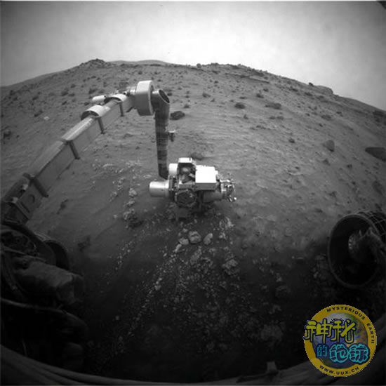 “勇气”号只好绕过这块名为“本垒板”的高地,而不是直接从它上面穿过。2008年“勇气”号是在“本垒板”北侧度过的,这块高地由坚硬的泥土堆积而成,顶部平坦,面积跟棒球场差不多,这座高地大约比周围地面高5英尺(约1.52米)。尽管它的行进路线发生了变化,“勇气”号已经按照它的夏季计划,开始检查一块二氧化硅丰富的岩石,收集更多与以前火星上是否有热水或蒸汽有关的信息。