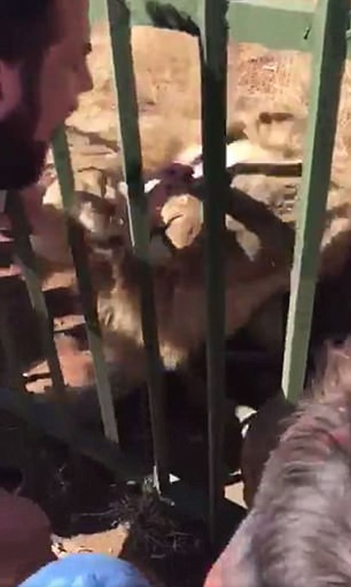 29岁的巴尔德温(Scott Baldwin)本周到布隆方丹一个动物园游览。从其友人拍得的影片可见,当时有2只狮子靠在栅栏边,其中一人伸手轻轻摸狮子的后颈和背部。而巴尔德温亦有样学样,伸手摸另一只狮子的头,但狮子的头部愈抬愈高,更突然咬住他的手,其他人立即慌忙协助他解困。