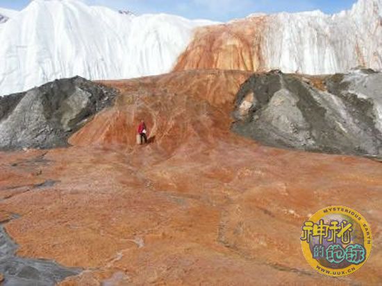 南极泰勒冰川(Taylor Glacier)的氧化铁物质,称为Blood Falls