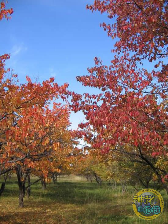 吉尔吉斯斯坦的野生杏树和苹果树生出了明亮的红色