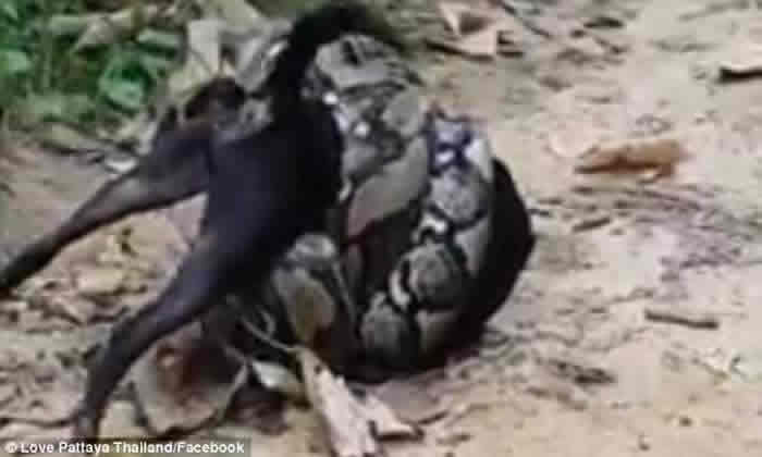 (神秘的地球uux.cn报道)据ETtoday:泰国网路近日疯传一则影片,只见影片中一只大黑狗惨遭巨蟒缠上,无辜的狗狗无法逃脱只能摇着尾巴求救,不料这时突然出现一群善心人士,拿出棍棒试图将巨蟒与黑狗分离,旁边更有一只白狗在旁「助威」,所幸最后黑狗平安脱困。但也有网友表示,巨蟒也是遵照生物掠食的天性,实在是有点可怜。