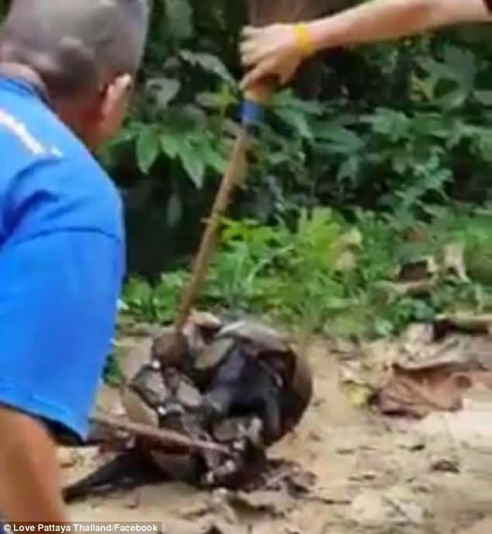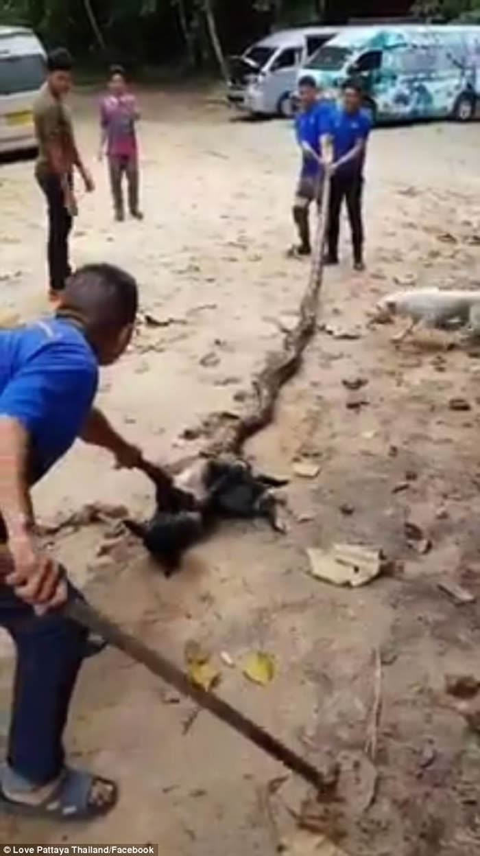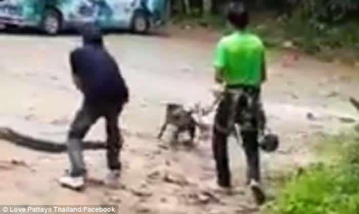 泰国清迈民众徒手掰开巨蟒救出大黑狗