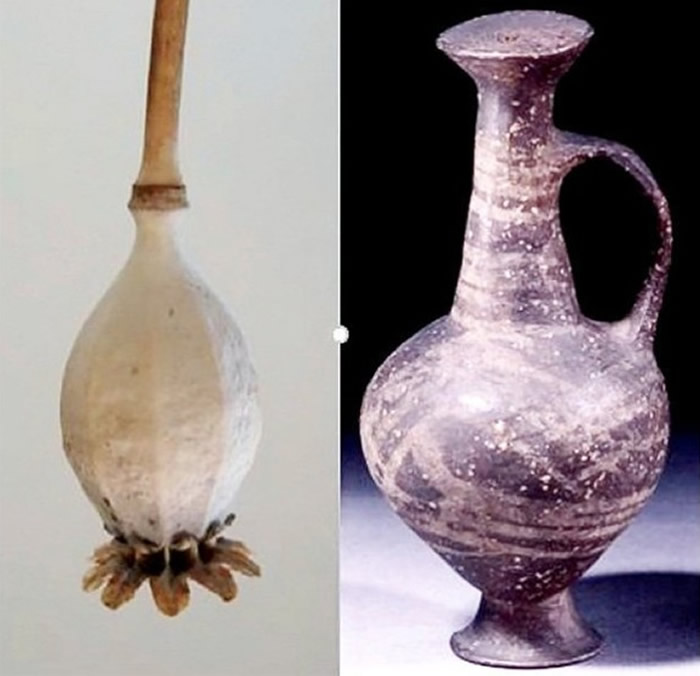 环形底座水瓶(右)外型如鸦片罂粟种子(左)。