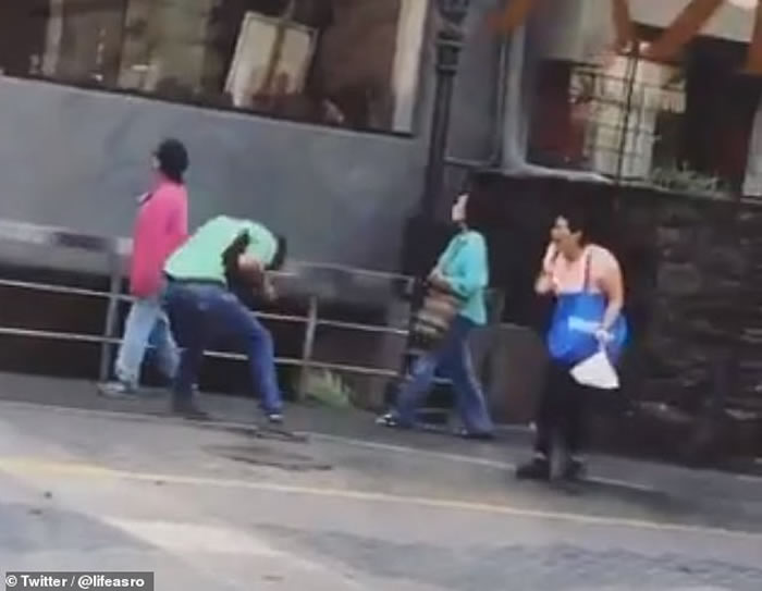 事发在首都利马,22岁女生塔富尔(Maria del Rocio Tafur)当时在一间酒店外和朋友聊天,并意外拍摄到这有趣的画面。只见2只鸽子先后袭击3名男子,其中一只鸽子先飞近一名身穿绿色衣服的男子,然后狠啄其背部,男子顿时痛得弯下腰,附近的女途人见状,也大吃一惊。