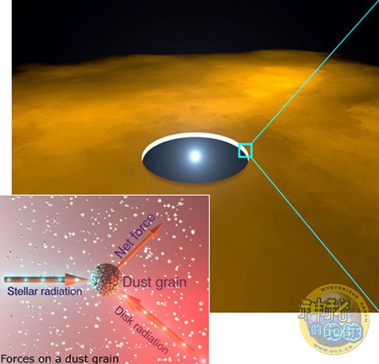 在第二篇文章中,克罗地亚斯普利特大学的物理学家Dejan Vinkovic研制出了一个模型,展现了恒星风与来自原行星盘内部的红外线辐射是如何结合在一起,从而将极其微小的硅酸盐结晶从原行星盘的内部区域吹到几十亿公里之外的更寒冷的外部区域,而那里正是彗星以及其他寒冷的岩石天体——例如冥王星——形成的地方。