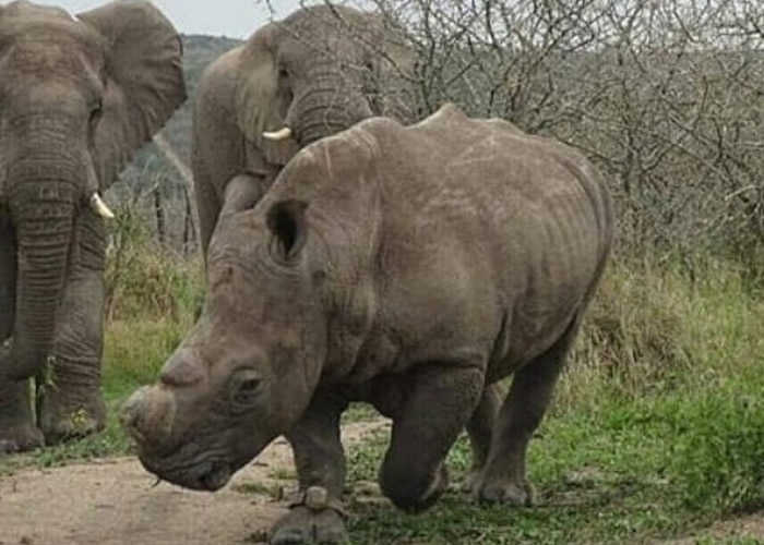 园方早在11年前收留犀牛孤儿“塔博”(Thabo),在塞索托语意指开心。园内亦有饲养另一只雌犀牛“恩通比”(Ntombi),它们自小一同长大,但仅限于“兄妹情”,塔博不愿意与女方交配。
