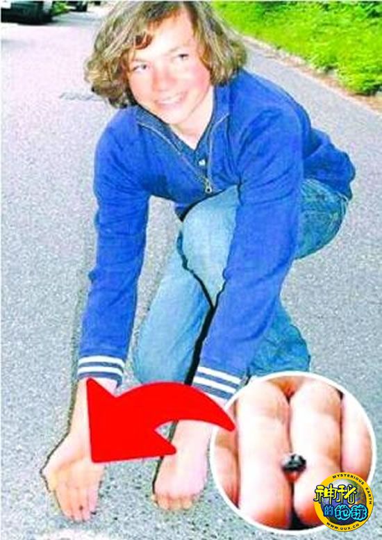 今年6月9日,布兰克上学途中,突然看到天空中一个发着白光的火球正闪电般朝他笔直飞来。布兰克还没有反应过来,那道白光就从他的左手手背上呼啸擦过,将他撞飞在地。