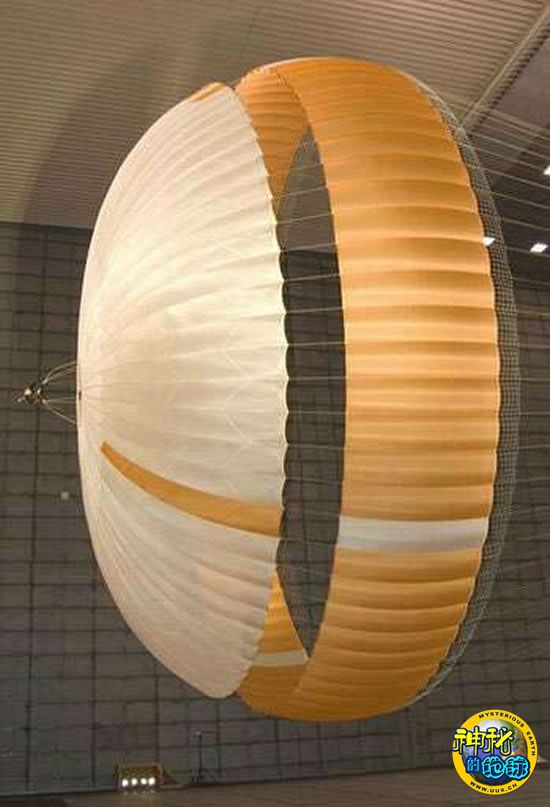 这个降落伞包含一系列材料、开阔地和蘑菇盖(mushroom cap),被称作盘缝带伞