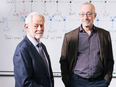 威尔逊(左)与米尔格罗姆(右)夺得诺贝尔经济学奖。威尔逊得悉获奖后接受电话访问...