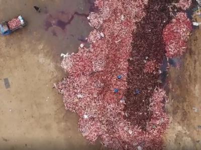 被剥皮的狐尸被丢弃成庞大的尸山,画面宛如地狱。(图/翻摄自Humane Society Inte...