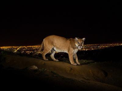 遥控相机在加州格里斐斯公园(Griffith Park)拍到了一只戴着无线电波项圈的山狮。...