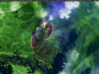 6月10日拍摄,位于俄罗斯北极圈内楚科奇自治区的野火照。 照片...