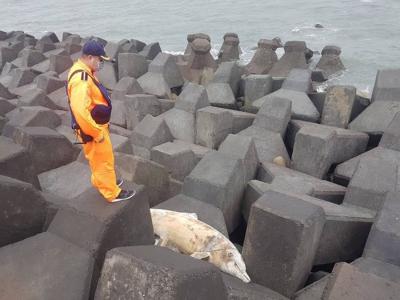 台湾彰化线西水道出水口处发现死亡瓶鼻海豚 流刺网缠绕有多处明显伤痕(图/台湾海...