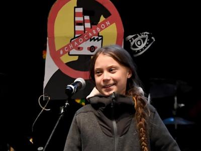 瑞典环保分子16岁少女通贝里抵达西班牙首都马德里出席关注气候危机的游行(神秘的地...