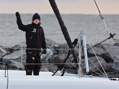 瑞典环保少女通贝里乘低碳帆船“流浪者号