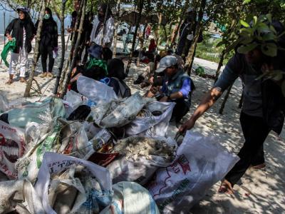 印尼庆祝独立日74周年 热心民众捡数百吨