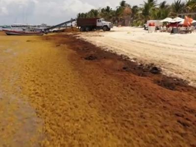 有毒马尾藻侵袭墨西哥犹加顿半岛海滩 面
