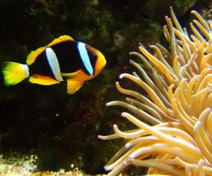 小丑鱼Amphiprion clarkii 虽然《海底总动员》中的尼莫会说话,但真正的小丑鱼只...