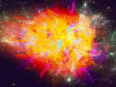 这位艺术家的概念展示了一个假设的事件,称为超千新星。一颗大质量恒星在超新星爆炸...