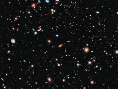 美国宇航局在2012年公布的哈勃极深场图像,显示了一小块满月角直径天区的超深空画...