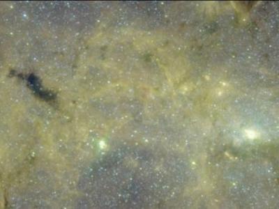 左边黑色区域为神秘“浮云”位置,右边亮点为银河系中央附近区域 美国宇航局的斯...