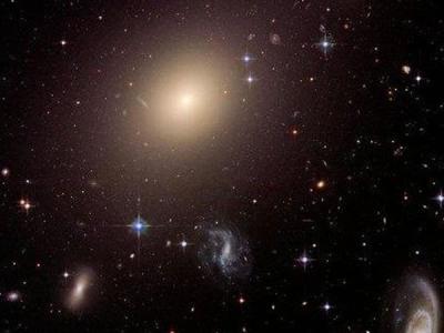 这是哈勃空间望远镜摄于2006年的影像。显示的是一个包含了各种星系的星系团,其中...