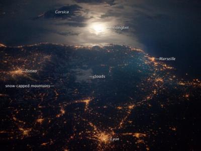 国际空间站宇航员4月28日捕捉到法意边境地区美丽的夜景图,意大利的都灵、法国的...