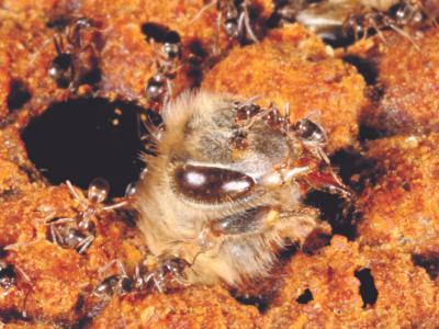 研究证明入侵蚂蚁物种与蜜蜂疾病水平增加