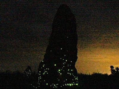 戈亚斯州埃马斯国家公园里发光的白蚁丘:点击甲虫Pyrearinus termitilluminans的幼虫...