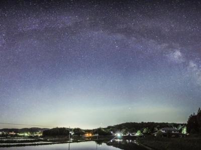 在日本比塞镇上空看到的银河拱门。它以其黑暗的天空而自豪,但也面临着来自附近其他...