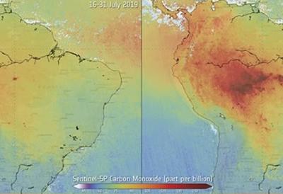 欧洲太空总署公开卫星图片显示亚马逊地带上月的空气污染问题加剧(神秘的地球uux.c...