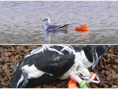 不少海鸟因遭气球缠身,痛苦死去。(神秘的地球uux.cn报道)美国有环保组织于2016至...