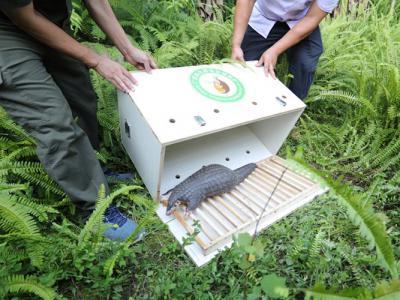 广西陆生野生动物救护研究与疫源疫病监测中心早前放生一只伤愈的中华穿山甲。人类对...