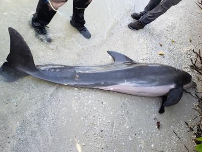 海豚误吞胶水喉无法进食搁浅美国佛罗里达