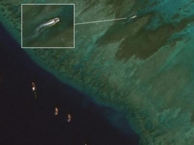 卫星照显示,渔船在黄岩岛作业。(神秘的地球uux.cn报道)美国...