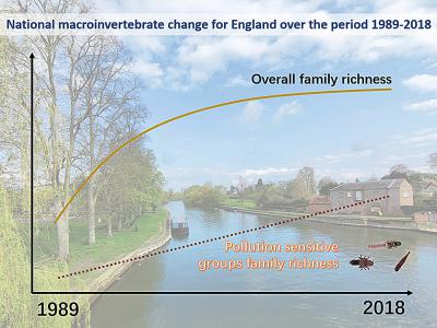 长期趋势显示,英国河流中的无脊椎动物的生物多样性正在改善。学分:uux.cn/总环境科...