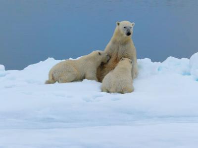 在岸上的时间里,北极熊妈妈可能冒着生命危险,在没有食物的情况下继续哺乳。信用:...