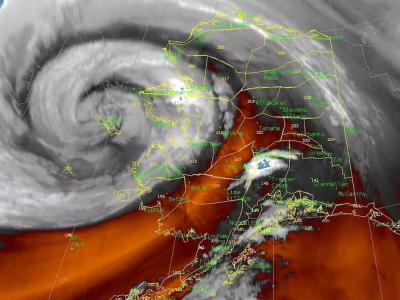 今年9月莫柏台风(Merbok)重创阿拉斯加西岸。图片来源:National Weather Service...