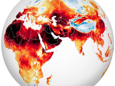 今年夏天严重热浪席卷全球多个地区,图为NASA卫星于2022年7月13日观测的地表温度。...