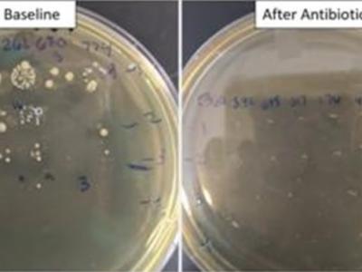 研究证服用抗生素令人体的肠道细菌(左图)大幅减少(右图)。(神秘的地球uux.cn报...