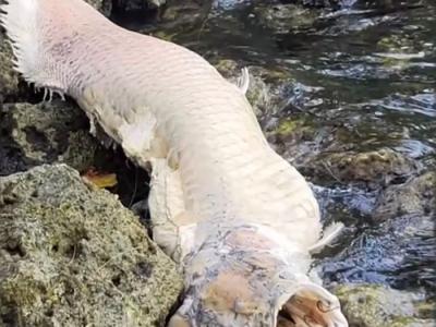 美国佛罗里达州发现3米长巨骨舌鱼尸体 生