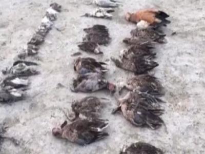 印度北部拉贾斯坦邦桑珀尔盐湖附近发现千余只候鸟遗体(Photo: ANI)(神秘的地球uux...