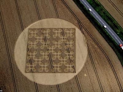 英国威尔特郡出现400英尺3D麦田怪圈 英国威尔特郡出现400英尺3D麦田怪圈 英...
