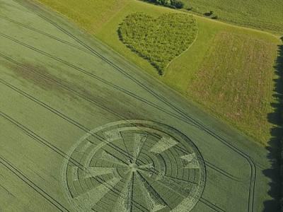 英国心形树林旁发现麦田怪圈 尽管麦田怪圈的设计十分惊人,但麦田主人却非常愤...